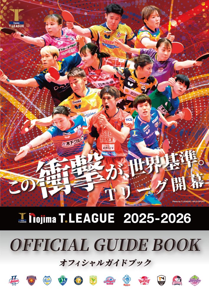 各チームの紹介はもちろんのこと、ルールの紹介や、Tリーグの楽しみ方、技術用語集など、初心者からコアなファンまで楽しめる内容となっています。観戦のお供に、是非ともオフィシャルガイドブックをご活用ください!