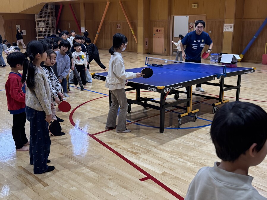 ラリー体験やサーブ体験、玉突きなどを行い、卓球の楽しさはもちろん、思い通りにいかない難しさにも挑戦してもらいました。ボールが続いたときの歓声や、惜しくも失敗したときの悔しそうな表情など、子どもたちの素直な反応が印象的な時間となりました。