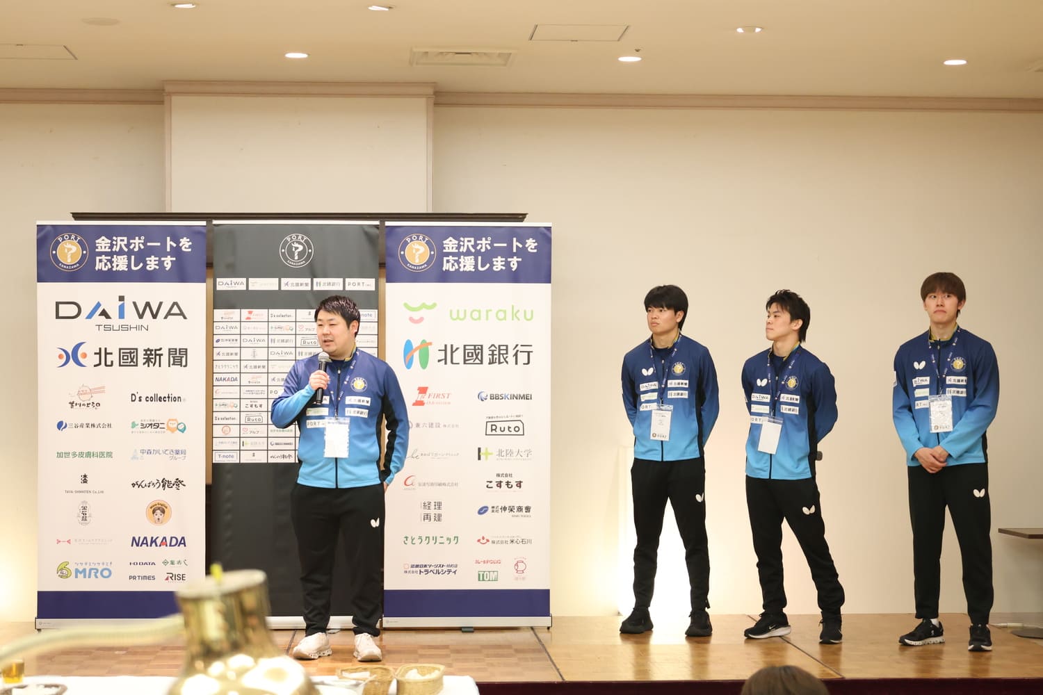 2026年3月16日(月)2025-2026シーズンを共に戦った、パートナー企業関係者、自治体関係者、石川県卓球連盟関係者、ファンクラブメンバーの皆さまをご招待し、「2025-2026シーズン金沢ポート報告会」を開催しました。