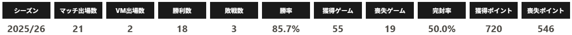 レギュラーシーズンにおいて、シングルス勝利を1点、ダブルス勝利を0.5点として計算した点数が最も高い選手(男女各1名)を対象とし表彰されるもので、横井選手はシングルス18勝 ダブルス6勝 21点とチームの勝利に繋がる活躍をみせました。