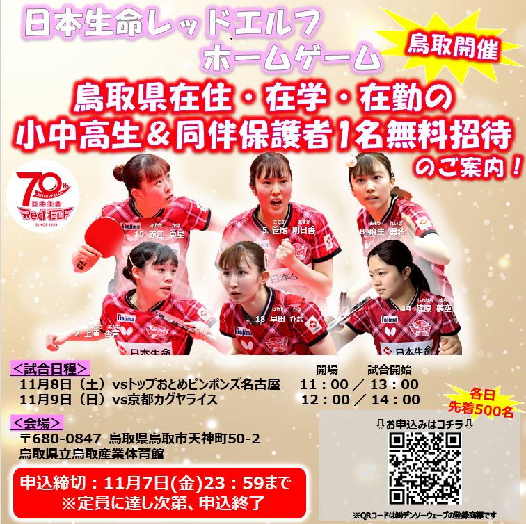 鳥取県に在住・在学・在勤の方およびそのご家族を対象に小中高生&同伴の保護者1名を無料ご招待します♪