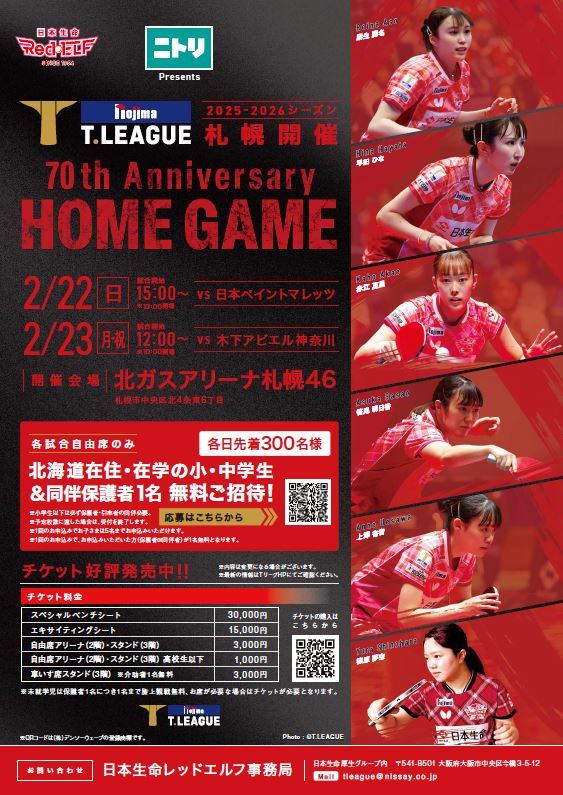 日本生命レッドエルフラストホームゲーム札幌会場『ニトリpresents日本生命レッドエルフホームゲーム in 札幌』のご案内です★