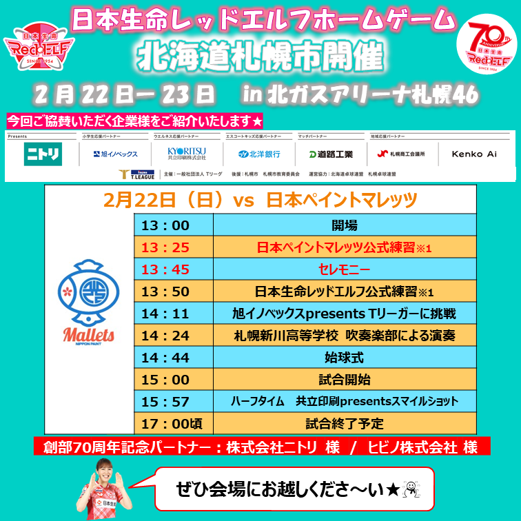 日本生命レッドエルフホームゲーム札幌会場の