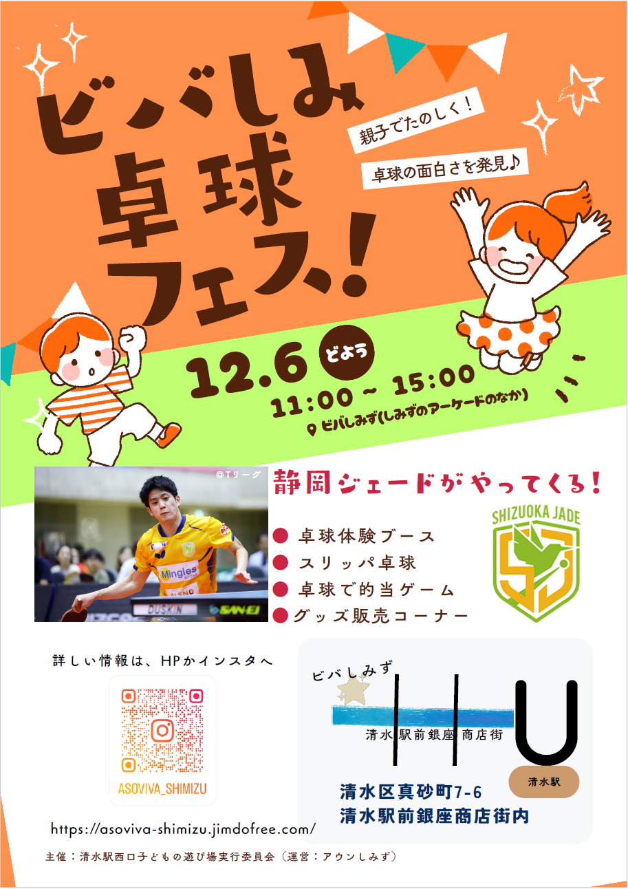 【静岡ジェード】12/6(土)ビバしみ卓球フェス開催のお知らせ