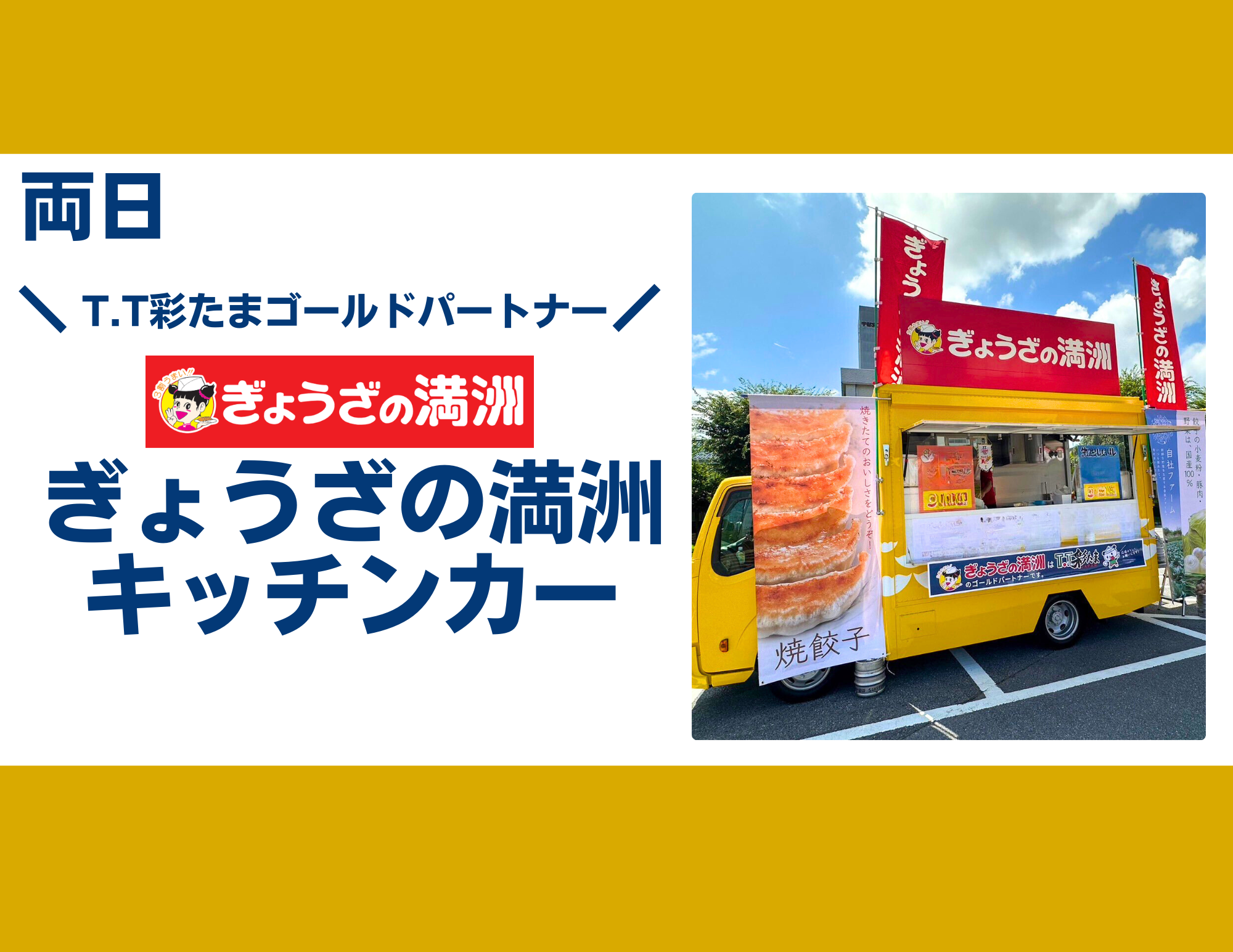 T.T彩たまゴールドパートナー【ぎょうざの満洲】さんのキッチンカーが出店!選手たちも大好きなぎょうざを食べながら、試合観戦をお楽しみください!
