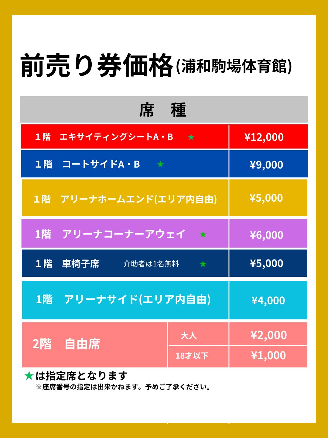 ◆指定席: