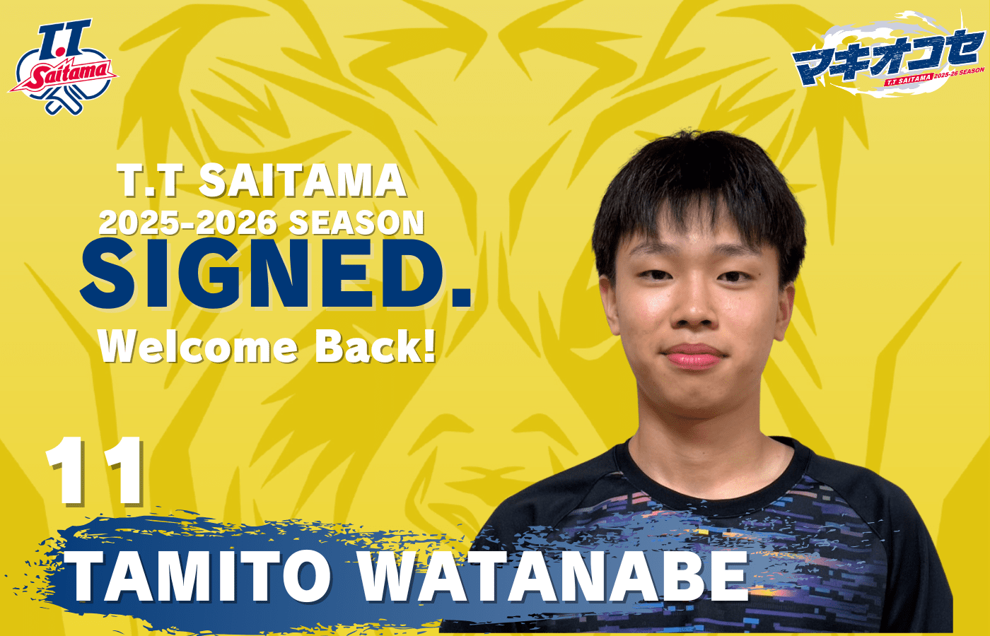 この度、T.T彩たまは2025-2026シーズンに向け、渡部民人選手と契約合意(新規)に至りましたので、お知らせ致します。