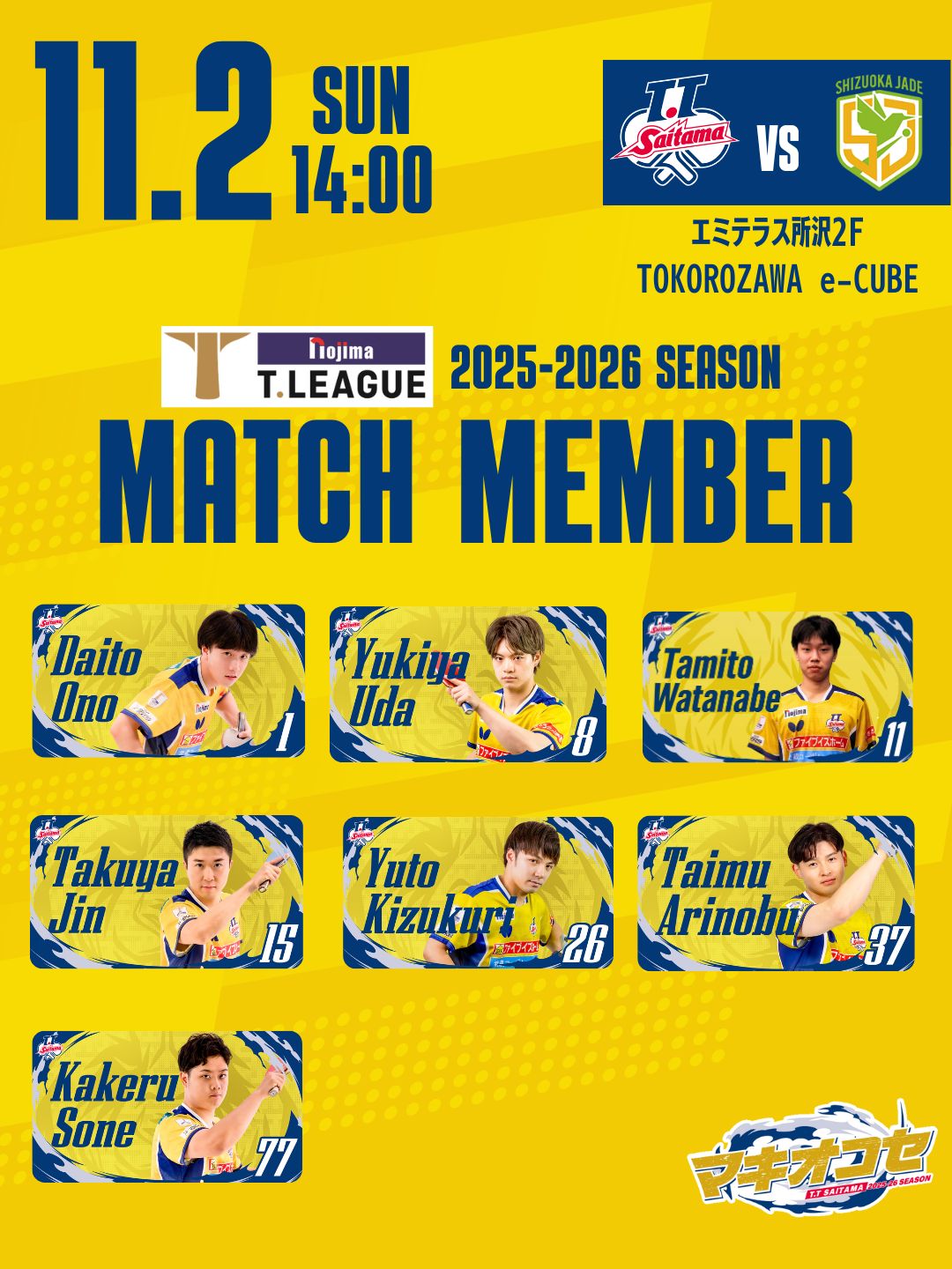 #1 小野 泰和 #8 宇田 幸矢 #11 渡部 民人 #15 神 巧也 #26 木造 勇人 #37 有延 大夢 #77 曽根 翔 ※状況により、ベンチ登録選手がメンバーから外れる場合もございます。予めご了承ください。