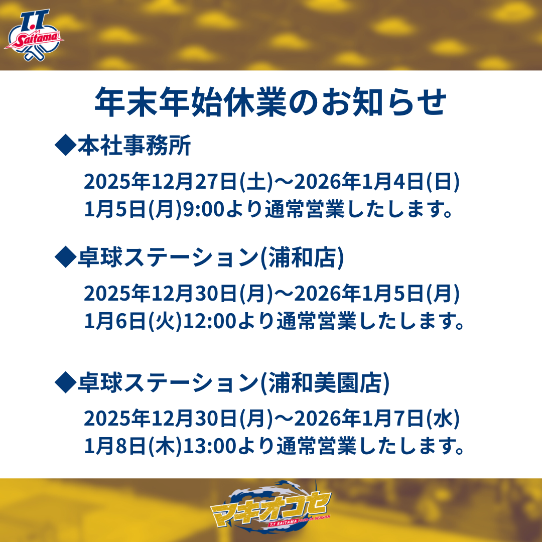 T.T彩たま株式会社では、誠に勝手ながら年末年始休業日を下記のとおりとさせてただきます。