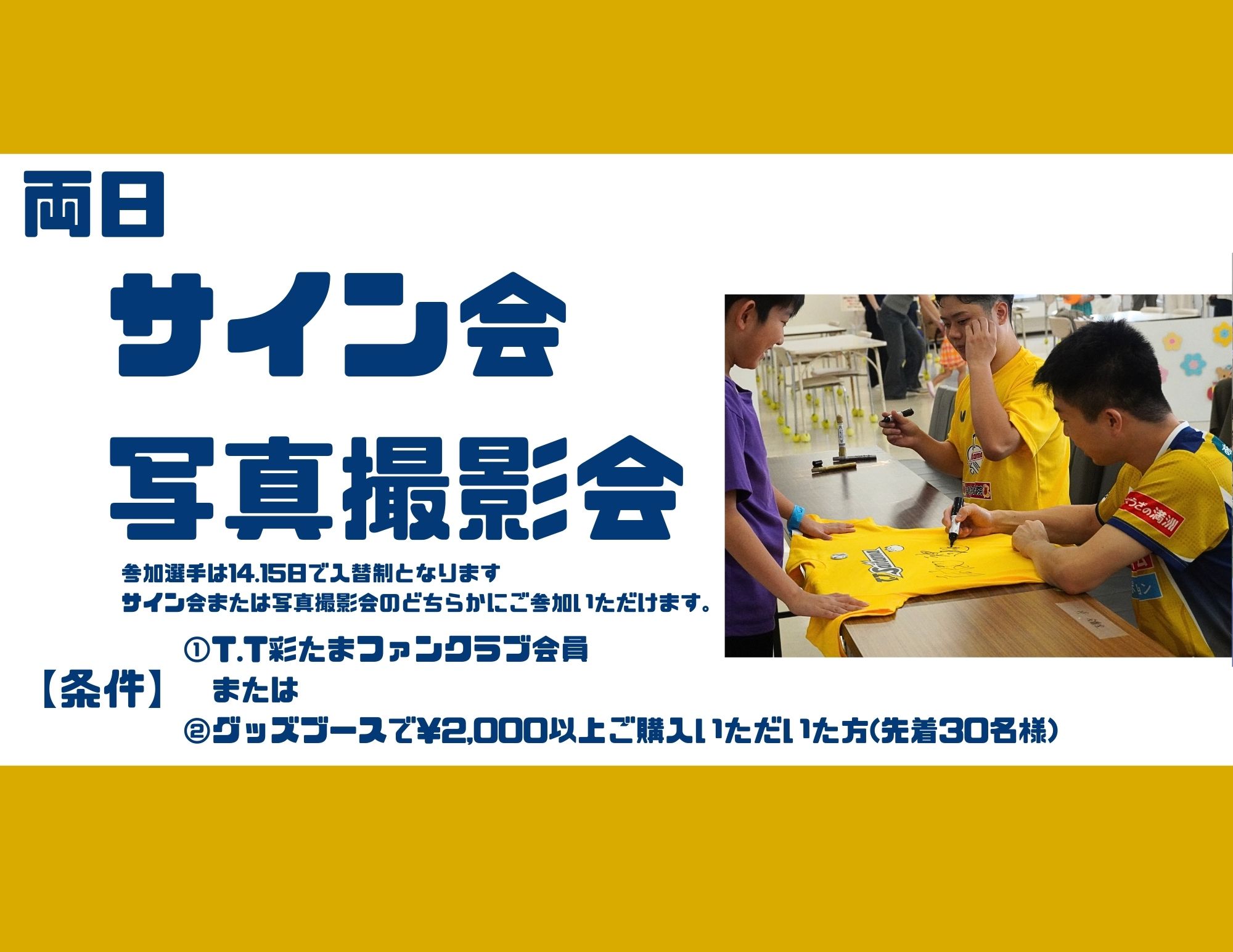T.T彩たま選手・監督によるサイン会or写真撮影会を実施いたします!