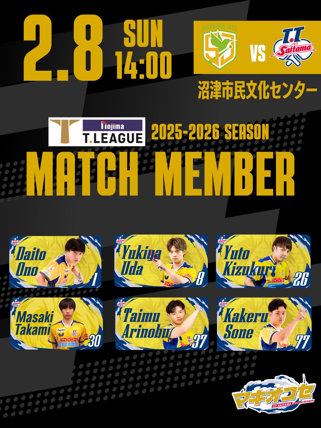 ※状況により、ベンチ登録選手がメンバーから外れる場合もございます。予めご了承ください。
