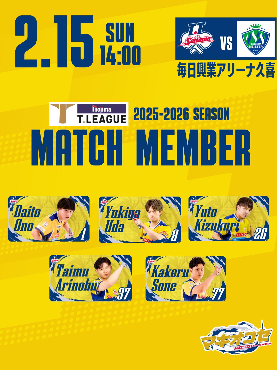 #1 小野泰和 #8 宇田 幸矢 #26 木造 勇人 #37 有延 大夢 #77 曽根 翔 ※状況により、ベンチ登録選手がメンバーから外れる場合もございます。予めご了承ください。