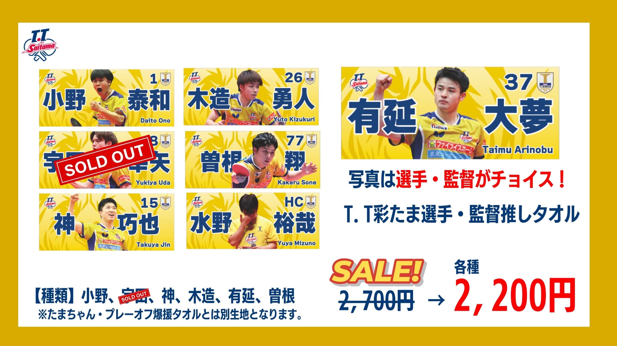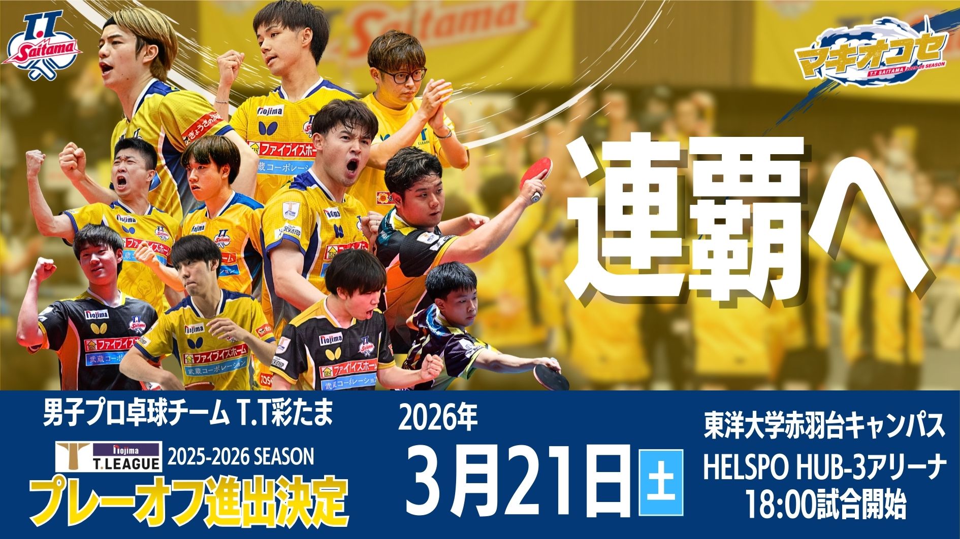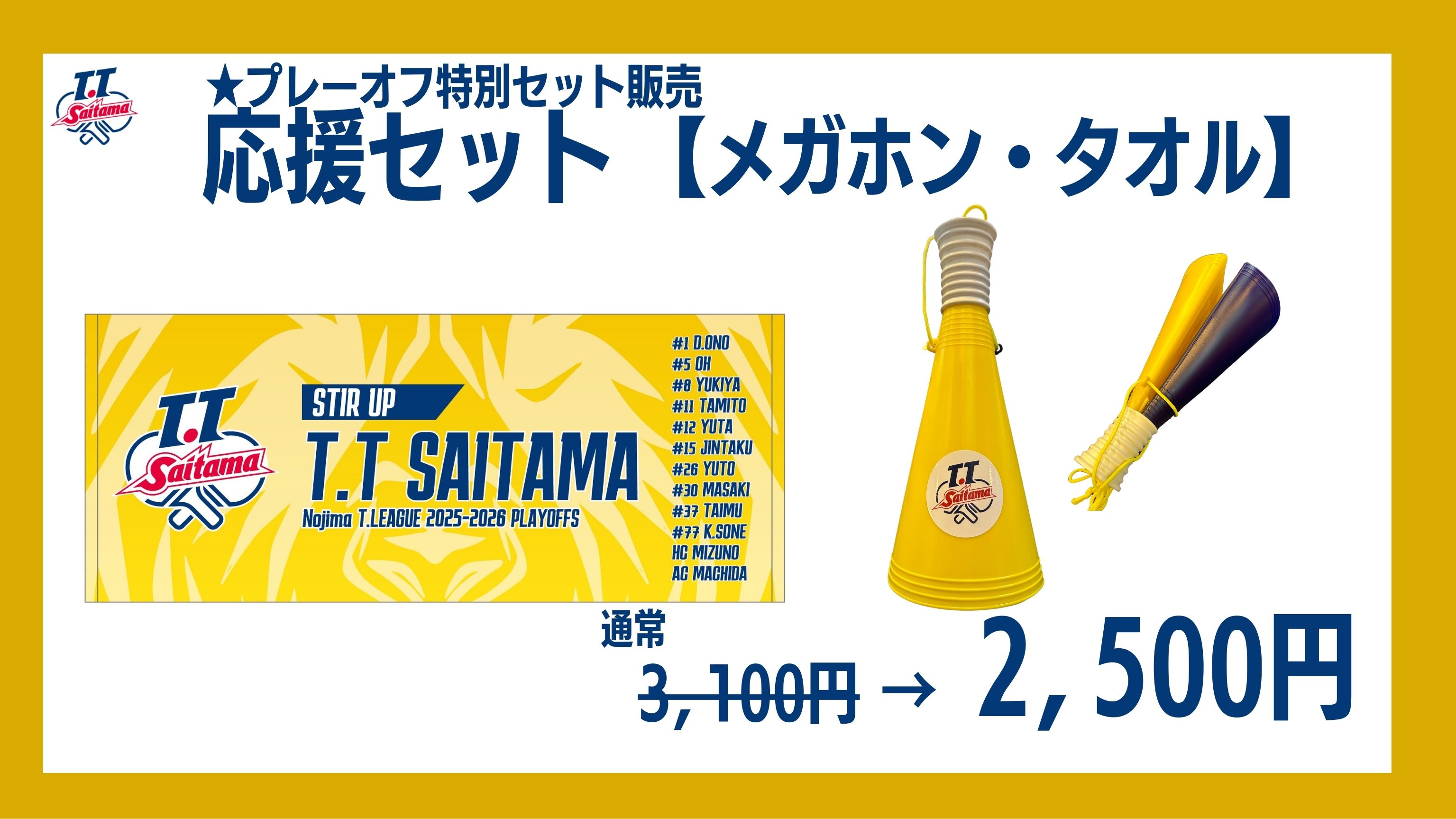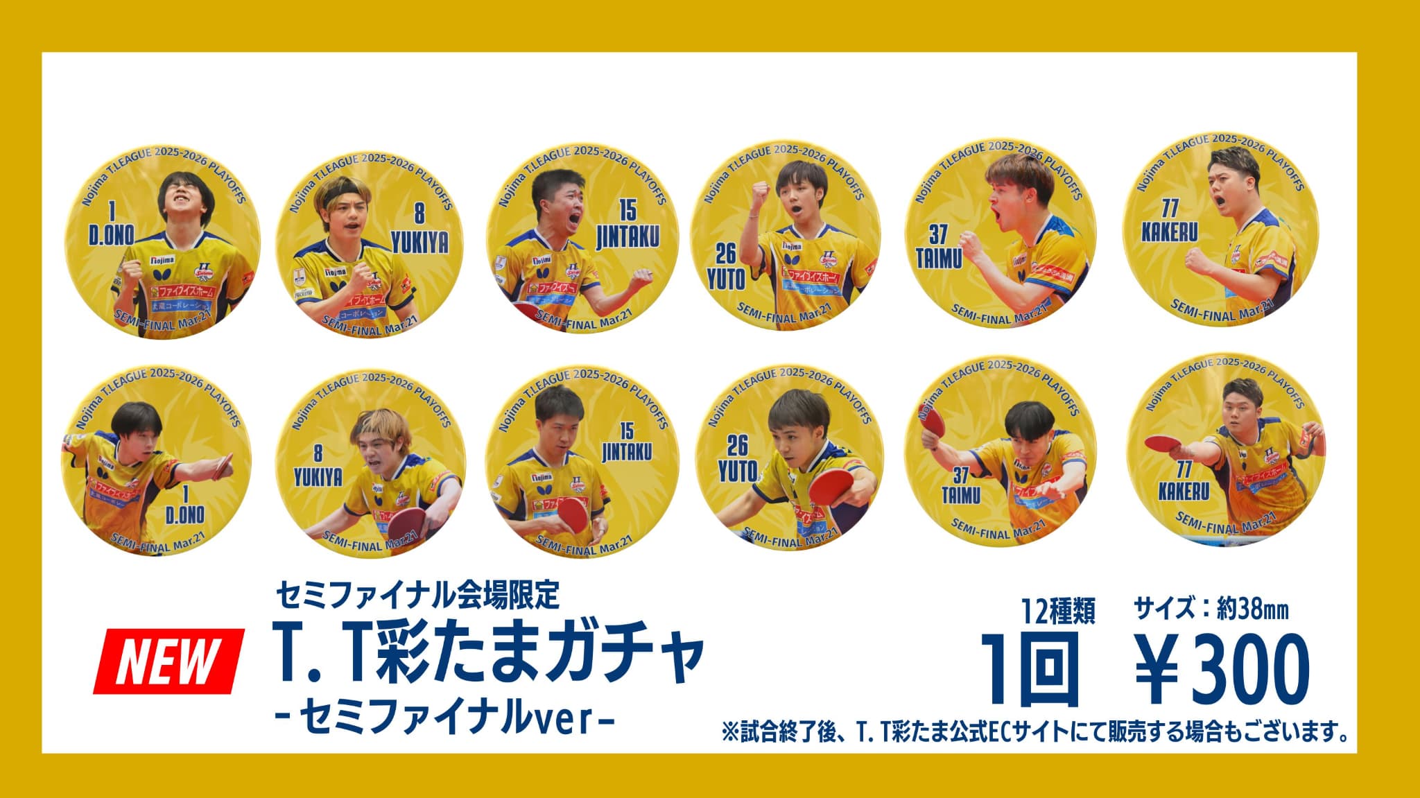 3月21日(土)【18時試合開始】プレーオフ男子セミファイナルにて、T.T彩たまグッズ販売が決定いたしました。